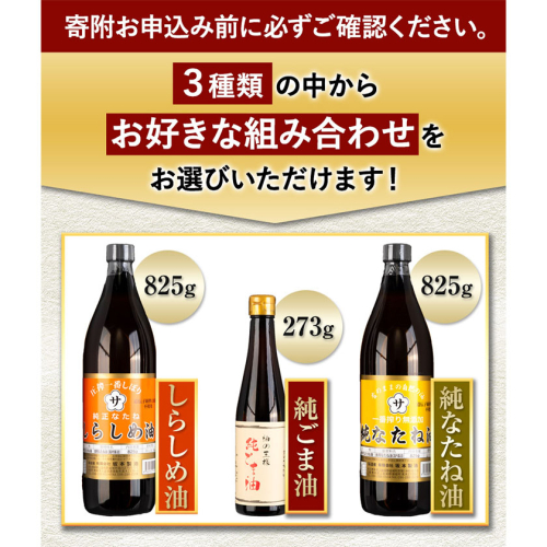 - 坂本製油 選べる 3本セット 純ごま油 純なたね油 しらしめ油 お好きな組み合わせを選べる! 御中元 有限会社 坂本製油《30日以内に出荷予定(土日祝除く)》ギフト箱入り 熊本県御船町 製油 油 調味料 ギフト 送料無料