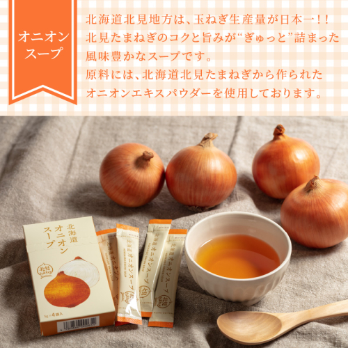 《7営業日以内に発送》大地の恵み北海道オニオンスープ 4袋×1箱 ( 玉ねぎ スープ たまねぎ 小分け オニオン ふるさと納税 即席 簡単 粉末 調味料 )【125-0001】