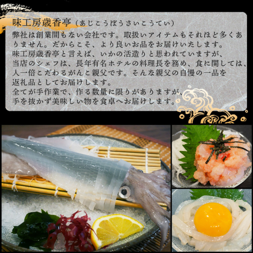 漁師さんから届いたイカを新鮮なうちに職人が1杯1杯丁寧に活造りに仕上げ、