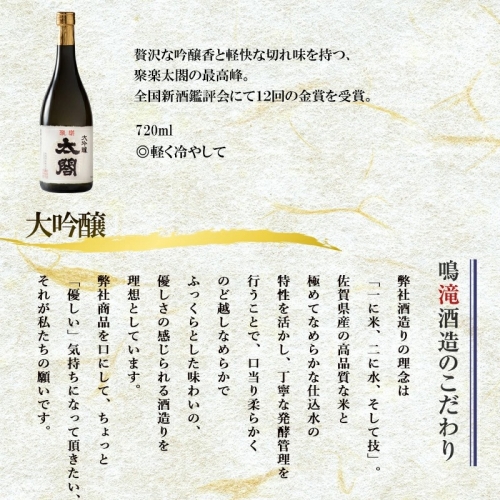- 唐津地酒太閤 淡麗辛口の大吟醸酒 芳醇辛口の特別純米酒 濃淳うま口の純米酒 720ml各1本(計3本) 日本酒飲み比べセット B-3
