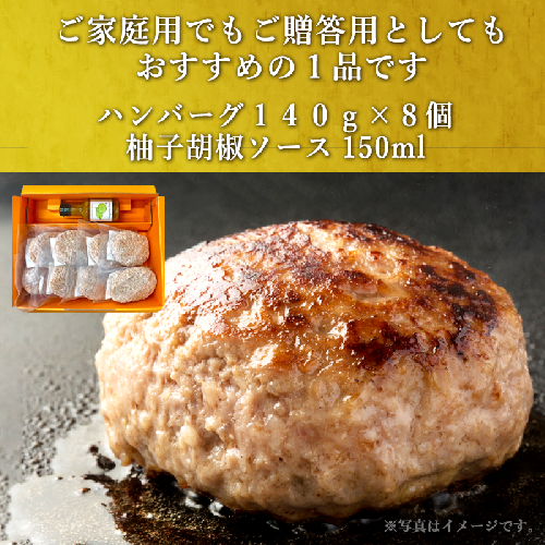 唐津バーグ8個と柚子胡椒ソースのギフトセット 冷凍 真空パック 惣菜 特上ハンバーグ 小分け 個包装