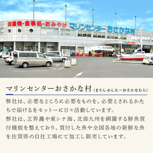 佐賀県には自社工場を完備しており自社で買付した魚や全国各地の新鮮な魚を加工し自社店舗のマリンセンターおさかな村や全国各地へお届けしています。