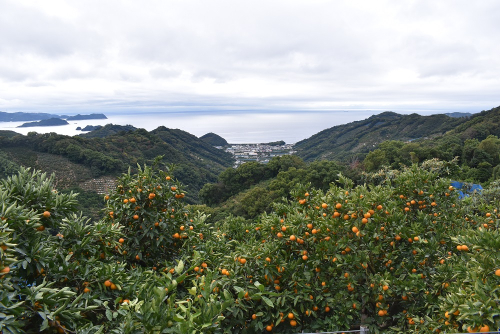 この地域は、海と山の間に位置し、みかん畑の多くは急な山の斜面にあります。