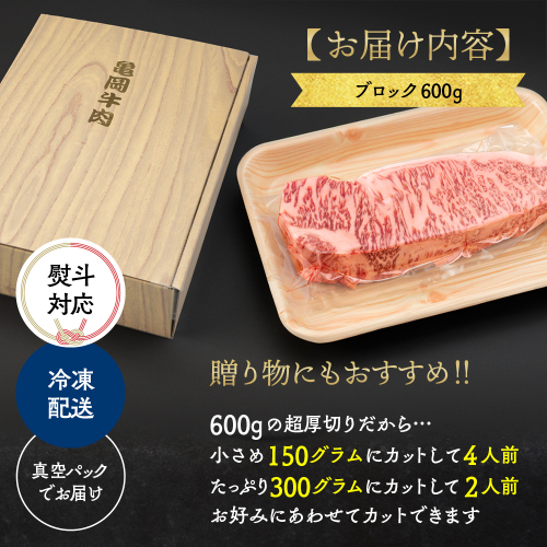 - 牛肉 ブロック 京都府産黒毛和牛 亀岡牛 サーロイン ブロック 600g 超厚切り≪焼肉 ステーキ サイコロステーキ 国産 希少 京都府産 黒毛和牛 和牛 冷凍 送料無料≫