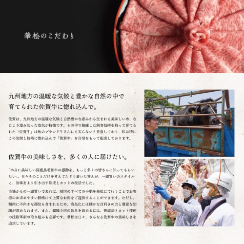 広い大空と、田園風景 自然に囲まれた美しい町 佐賀県東部にある小さな小さな町・上峰。近代化が進み、どの地方も同じような風景が広がっている現在でも、今なお日本の原風景をそのままに残しています。武将・源為朝を育んだ鎮西山から湧き出る清らかな水は、町全体へと駆け巡り豊かな土壌を作り上げます。 清らかな水に恵まれた肥沃な大地で育った作物や家畜は、もちろんどれも最高級。特に、町の南部で肥育を行っている黒毛和牛の最高級銘柄”佐賀牛”は、全日本牛枝肉コンクールにて名誉賞(農林水産大臣賞)を受賞するほどの逸品。口に入れた瞬間のとろけるような肉質は最高級A5ランクならではの食感です。