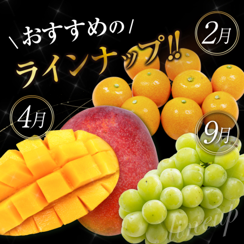 代表の完熟マンゴーをはじめ、選び抜いたフルーツを1年間、全12回お届けいたします。