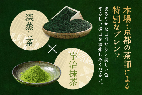 深いコクのあるまろやかな味わいで健康成分が豊富な深蒸し茶と、甘みと旨みがたっぷりの本場の宇治抹茶をブレンドしたお茶です。美しい色とおいしさが詰まった特別な深蒸し茶を1kgたっぷり味わってください。
