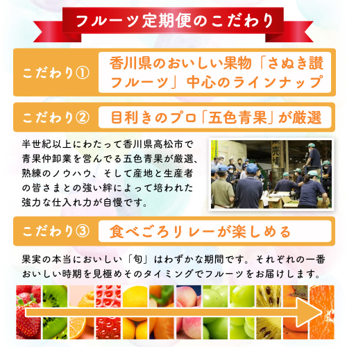 香川県産の選りすぐりフルーツを年間12回定期便でお届けします。