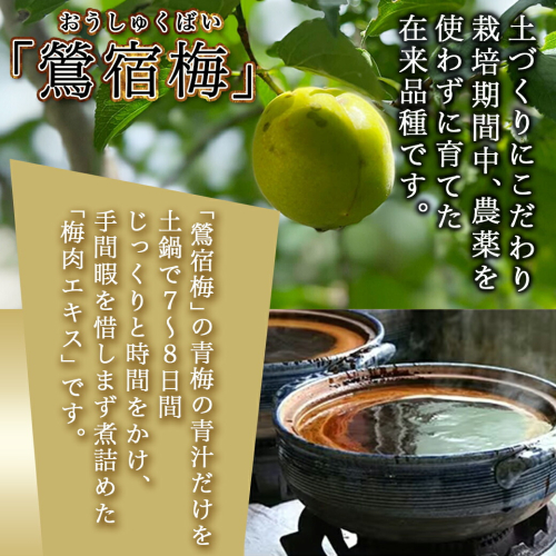 栽培期間中、農薬を使わずに自家生産した「鶯宿梅」の果汁だけを土鍋で7~8日間、煮詰めたエキスです。