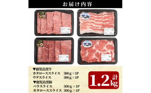C0-108 鹿児島黒牛すきやき・黒豚しゃぶしゃぶセット(計1.2kg)<A-1501>【JA】 468066 - 鹿児島県霧島市