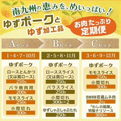全部真空パック!10回お届け☆都城産豚「ゆずポーク」とゆず加工品の定期便_TAA10-1403