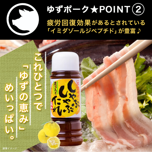 「ゆずポーク」のスライスを中心に、ゆずしゃぶしゃぶたれや「わしの脇腹」特製チリソースなど、届くのが楽しみなセットです。