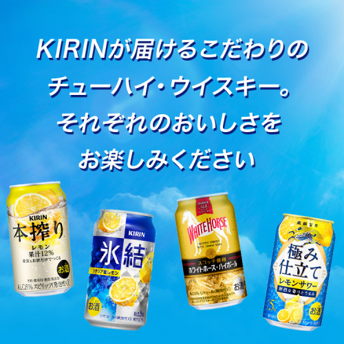 氷結レモン・氷結グレープフルーツ・氷結シャルドネスパークリング・氷結サワーレモン・氷結パイン・氷結ウメ・氷結無糖ウメ・氷結ゆず・氷結ストロングレモン糖質ゼロ・氷結ストロング完熟GF糖質ゼロ・氷結無糖レモン4%・氷結無糖レモン7%・氷結無糖グレープフルーツ7%・本搾りレモン・本搾りグレープフルーツ・本搾りオレンジ・本搾りピンクグレープフルーツ・麒麟特製レモンサワー6%・麒麟特製レモンサワー9%・麒麟特製ホワイトサワー・麒麟特製 コーラサワー・麒麟特製 グレープサワー・ホワイトホースハイボール・ジンソーダ杜の香