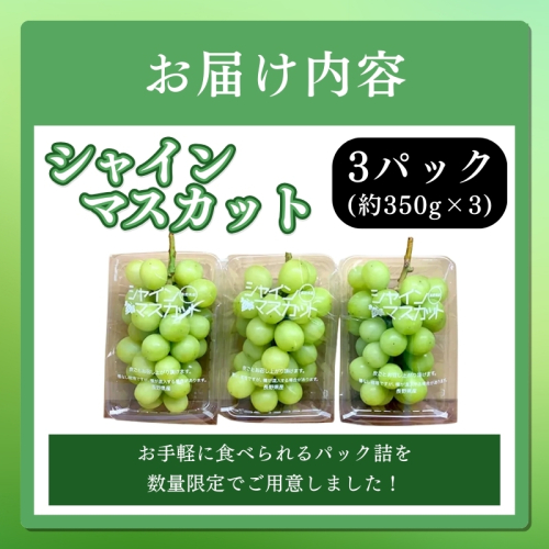 【農家応援企画!!】シャインマスカット家庭用3パック(約350g×3)※オンライン決済限定 2025秋発送 果物 ぶどう フルーツ 食後 デザート