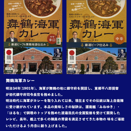 舞鶴海軍カレー 4食セット 厳選ビーフ仕込み(中辛)2箱・厳選ビーフ&舞鶴地酒仕込み(やや辛口)2箱 レトルトカレー ご当地カレー 海軍 カレー レトルト カレーライス おみやげ ビーフカレー 牛 中辛カレー 海軍カレー 舞鶴カレー