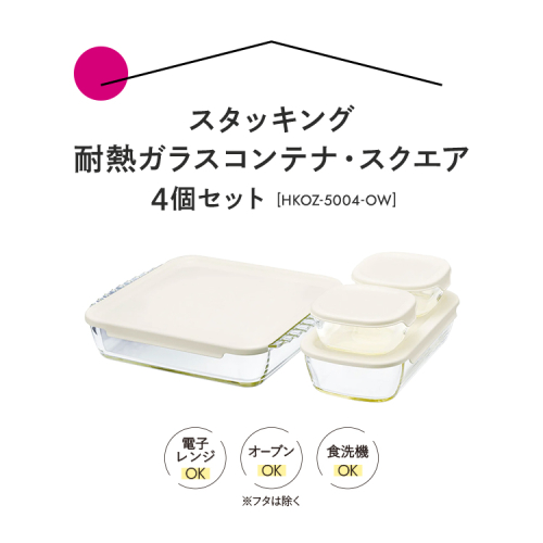 - HARIO スタッキング 耐熱ガラス コンテナ・スクエア 4個セット[HKOZ-5004-OW]|ハリオ 耐熱 ガラス 食器 器 保存容器 キッチン キッチン用品 日本製 おしゃれ かわいい グラタン皿 電子レンジ可 オーブン可_BE66