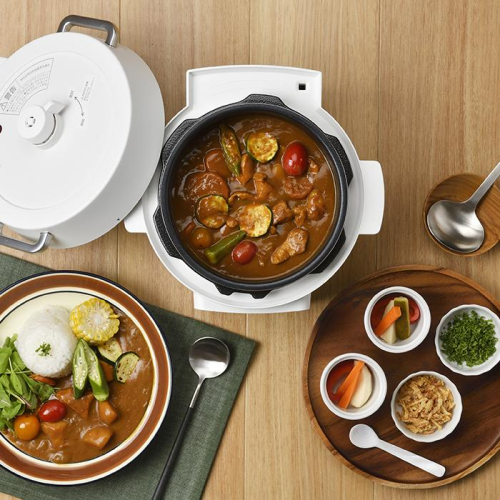 圧力調理でいつもの調理時間を短縮、本格料理も簡単に調理できる電気圧力鍋です。6種類の自動メニュー搭載で普段作る料理が、ボタン1つで簡単に作れます。6種類の手動メニューも搭載しているので、メニューに合わせて手動メニューを選び、時間・温度などを設定し調理ができます。オリジナルレシピブック付きで、肉・魚・野菜料理やスイーツまで豊富なレシピで毎日の献立に困りません(65メニュー掲載)。グリル鍋としても使える2WAYタイプでお鍋もできます。火を使わないから、安心安全でほったらかし調理が可能です。