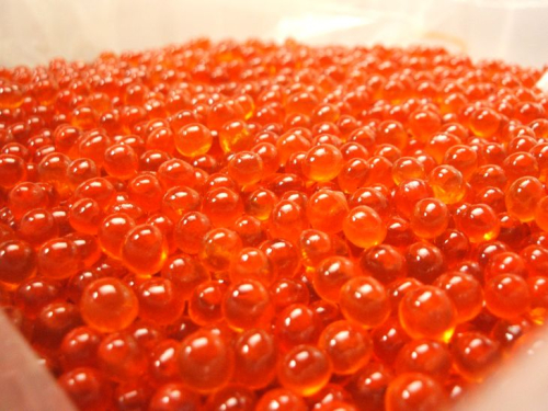 網走沖で水揚げされた秋鮭(メス)をすばやく捌いて筋子を取り出しています。 卵が新鮮な内に1粒1粒丁寧にほぐし、特別な調合の醤油ダレで漬け込みました。 とても手間ひまをかけた逸品です。 いくら独特の食感が口の中で感じられ、旨味が広がっていきます。 アツアツのご飯と一緒に食べれば、最高の時間が過ごせると思います。