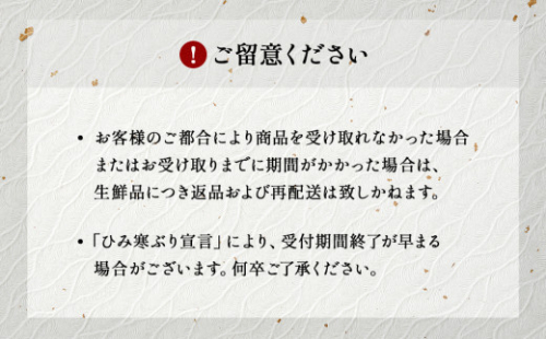 ※「ひみ寒ぶり宣言」の発令がなく、今年度は「ひみ寒ぶり」をお届けできない可能性がございます。