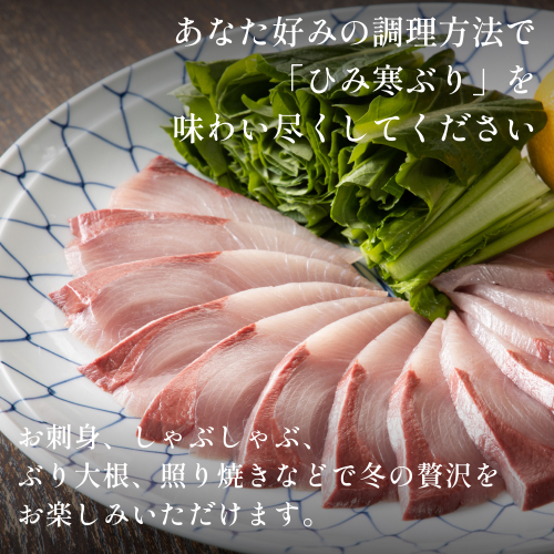 日本農業遺産認定の「氷見の持続可能な定置網漁業」により水揚げされたひみ寒ぶりをお刺身でお届けします。