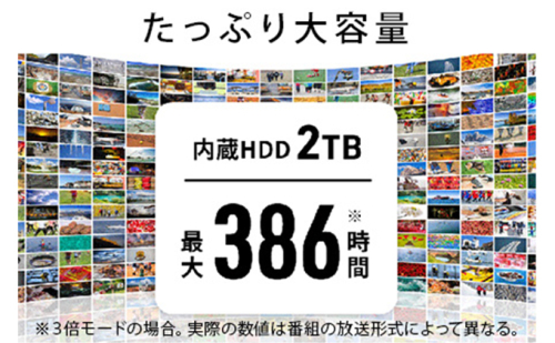【たっぷり録画できる】大容量 2TBの内蔵HDD搭載。ポータブルHDDに対応、内蔵HDDと合わせて最大8TBに拡張可能。