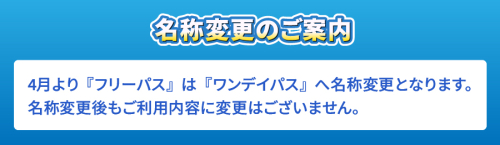 ※4月より『フリーパス』は『ワンデイパス』へ名称変更となります。