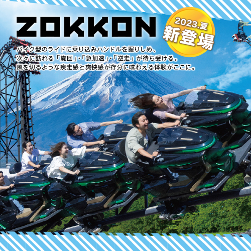 富士山麓に広がるアミューズメントパークには、「FUJIYAMA」「ナガシマスカ」「ええじゃないか」「高飛車」「ZOKKON」などの大型コースターをはじめとした‟世界最大級”の絶叫アトラクションが勢揃い!