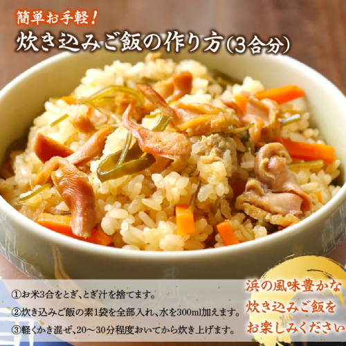 浜の風味豊かな炊き込みご飯の素に仕上げました。
