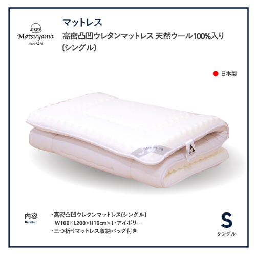 - 高密凸凹ウレタンマットレス 天然ウール100%入り(シングル)