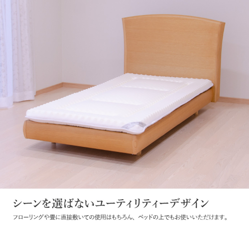 また、1枚で敷いて敷布団としてもお使いいただけます。(本製品を体の一番近い敷き布団としてご使用いただくと、点で支える体圧分散効果がより発揮されます。)
