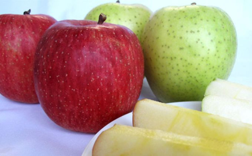 「サンふじ」は、果実に袋をかけない栽培方法で、太陽を直接受け、甘味が強くジューシー。「王林」は、甘味が強く、独特の甘い芳香があります。