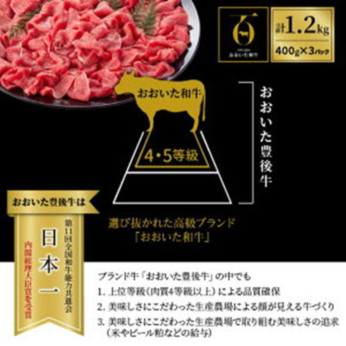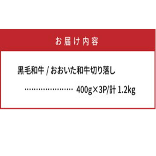 商品内容:黒毛和牛/おおいた和牛切り落し400g×3P/計1.2kg