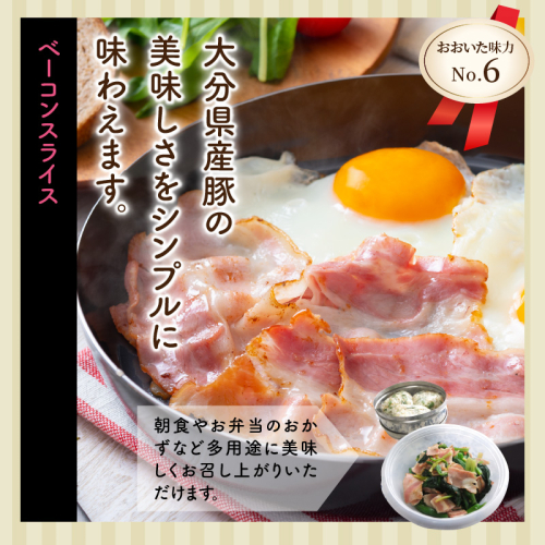 ・粗挽きウインナーソーセージ、ベーコンスライス=大分県産豚の美味しさを味わえるシンプルな両品。朝食やお弁当のおかずなど多用途に美味しくお召し上がりいただけます。
