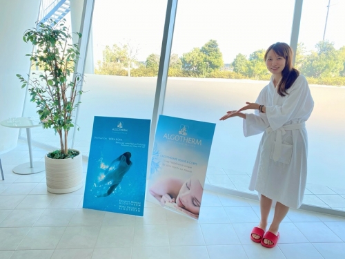 【説明】駿河湾海洋深層水を使ったバブルバスでコリや疲れを和らげると共に海のミネラルを吸収。心身ともにリラックスし疲労回復を図ります。その後、フランスのマリンコスメティックブランド「アルゴテルム」のエイジングケアラインを使用し、デコルテを含むフェイシャルコースを行います。海藻ボールを使った温感マッサージやオイルベースのピールオフマスクでふっくらと潤いツヤのあるお肌に導きます。