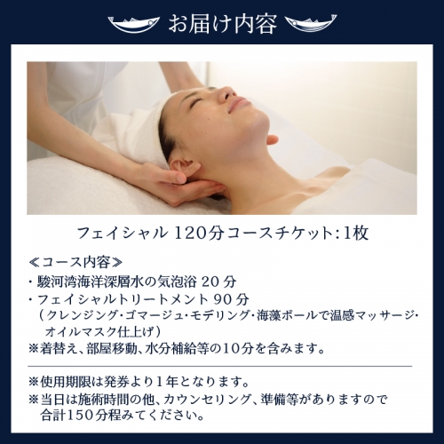 【内容】気泡浴+フェイシャル 合計120分コースのチケット:1枚