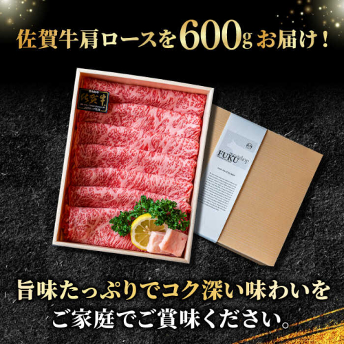 <しゃぶしゃぶ・贈り物に>佐賀牛肩ロース スライス 600g 吉野ヶ里町 /meat shop FUKU A5等級 黒毛和牛 ブランド和牛 佐賀県産 国産 すきやき しゃぶしゃぶ 贈答[FCX006]