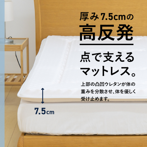 厚み7.5cmの高反発、点で支えるマットレス。