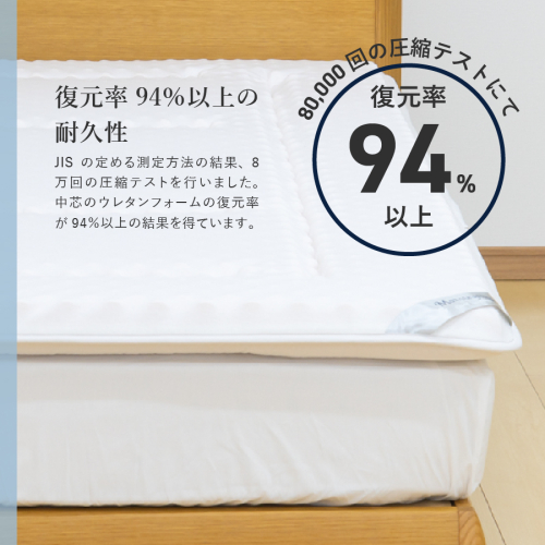 中芯のウレタンフォームの復元率が94%以上の結果を得ています。