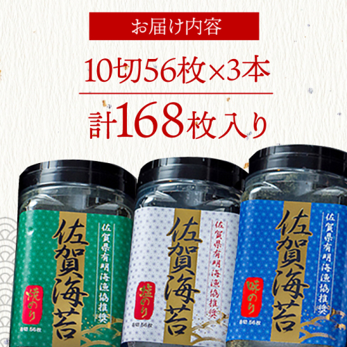 味のり・焼のり・塩のりの3本セットでお送りいたします。