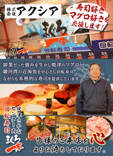 焼津市は静岡県の中部に位置する自治体で、温暖な気候なまちです。焼津市には遠洋漁業の基地として主にカツオ・マグロが水揚げされる焼津港と、近海・沿岸のアジ・サバなどが水揚げされる小川港の2つを総称した焼津漁港、シラスや駿河湾でしか漁獲できないサクラエビが水揚げされる大井川港があります。そのため、焼津では水産加工業も全国屈指の生産地となっており、カツオ節など様々な種類の水産物を特産品としています。また、温暖な気候と大井川を水源とする豊かな水など自然条件に恵まれ、米やいちご、茶、みかんなどの農業も豊富です。ぜひ、焼津市の特産品をお楽しみください。
