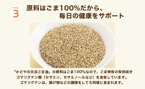 ごま油は料理でよく使います。味付きにも風味づけにも最適ですし、特にここのごま油は風味が生きています。だからこうい3本セットはとても嬉しいです。もっと大容量の瓶だともっと嬉しいんだけどな、と思いました。