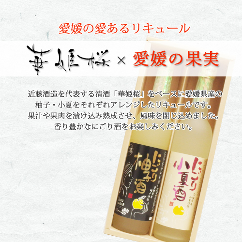 「愛あるリキュール」500ml×2種セット にごり柚子酒・にごり小夏酒 愛媛県産フルーツ使用 【愛媛 近藤酒造】 ギフト・プレゼントに最適