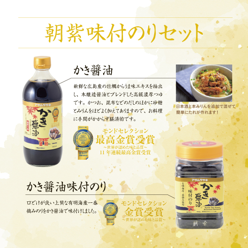 朝紫味付のり セット AN-30 かき醤油 かき醤油味付のり セット かき醤油2本 味付け海苔3個 株式会社アサムラサキ《45日以内に出荷予定(土日祝除く)》岡山県 笠岡市 ごはん お供 醤油 しょうゆ 味付けのり 海苔 カキ 牡蠣