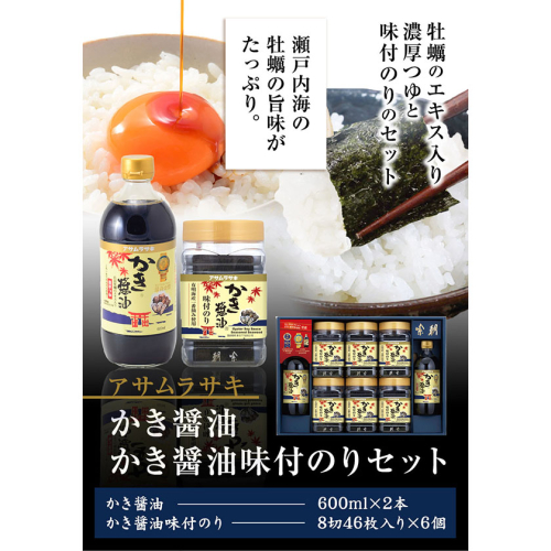 朝紫味付のり セット AN-50 かき醤油 かき醤油味付のり セット かき醤油2本 味付け海苔6個 株式会社アサムラサキ《45日以内に出荷予定(土日祝除く)》岡山県 笠岡市 ごはん お供 醤油 しょうゆ 味付けのり 海苔 カキ 牡蠣