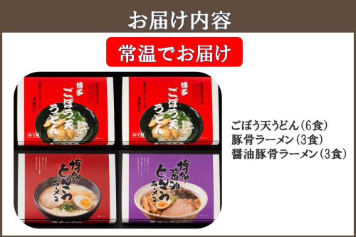 博多ごぼう天うどん(6食)&豚骨・醤油豚骨ラーメン(各3食)セット【A5-432】