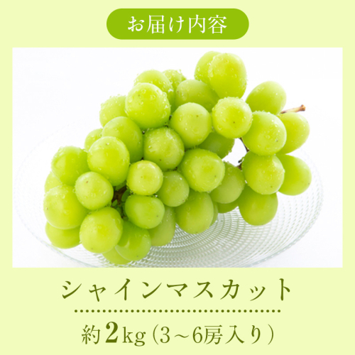 ぶどう 先行予約 シャインマスカット 約2kg 3~6房入り 葡萄 ブドウ フルーツ 果物 シャイン マスカット デザート おやつ 信州 2025年秋発送  659469 - 長野県長野市