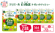 - エリエール i:na(イーナ)トイレットティシュー[シングル100m]12ロール×6パック/計72ロール