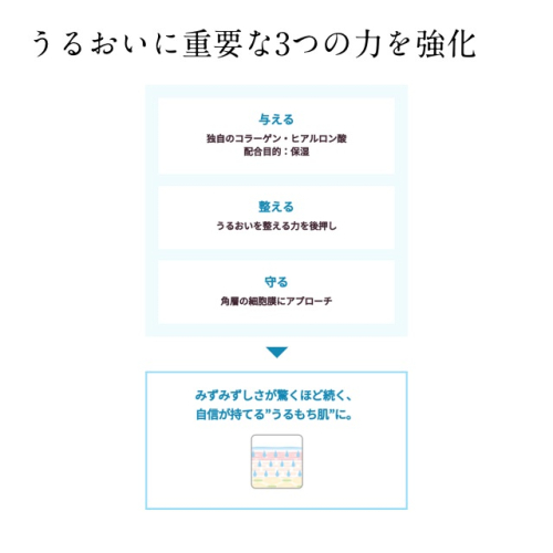 コラーゲン*のうるおいベールで、与えた成分を肌にとどめ、バリア機能をゆるぎなく。