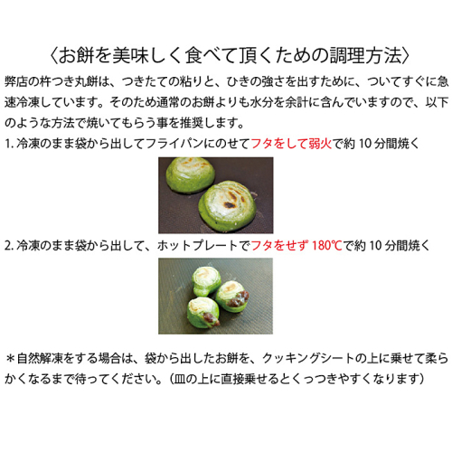 前年は白いお餅とよもぎ餅(粒あん入り)を頼んで、よもぎ餅をもっと食べたいと思ったので今回はよもぎ餅だけのものを選びました。冷凍で12月に来たので、そのままお正月まで待って、お正月にみんなでいただきました。トースターで焼くとお餅が柔らかいので焼きあがった時にはあんこが中から飛び出してきますが、とてもおいしかったです。後でトースターの網の掃除が大変なので星1つ減らしました。