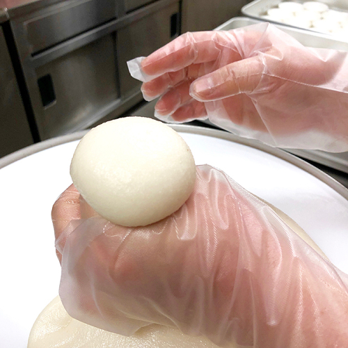 一般的に流通している餅と異なり、昔ながらの「杵つき」製法でお餅をついています。